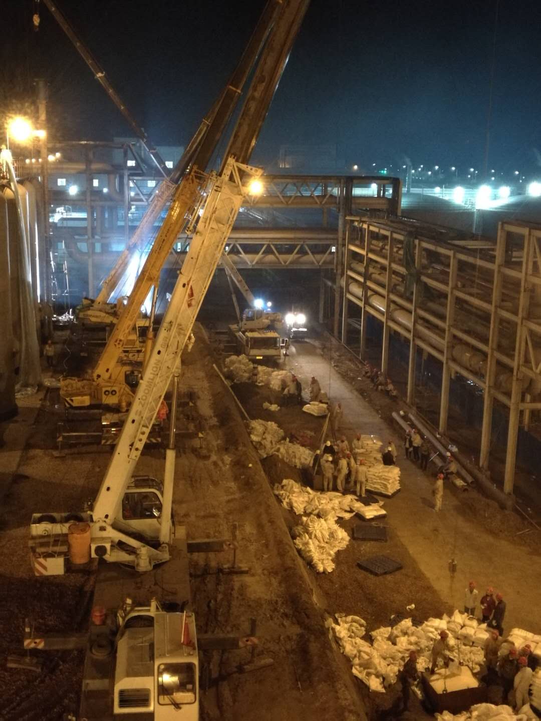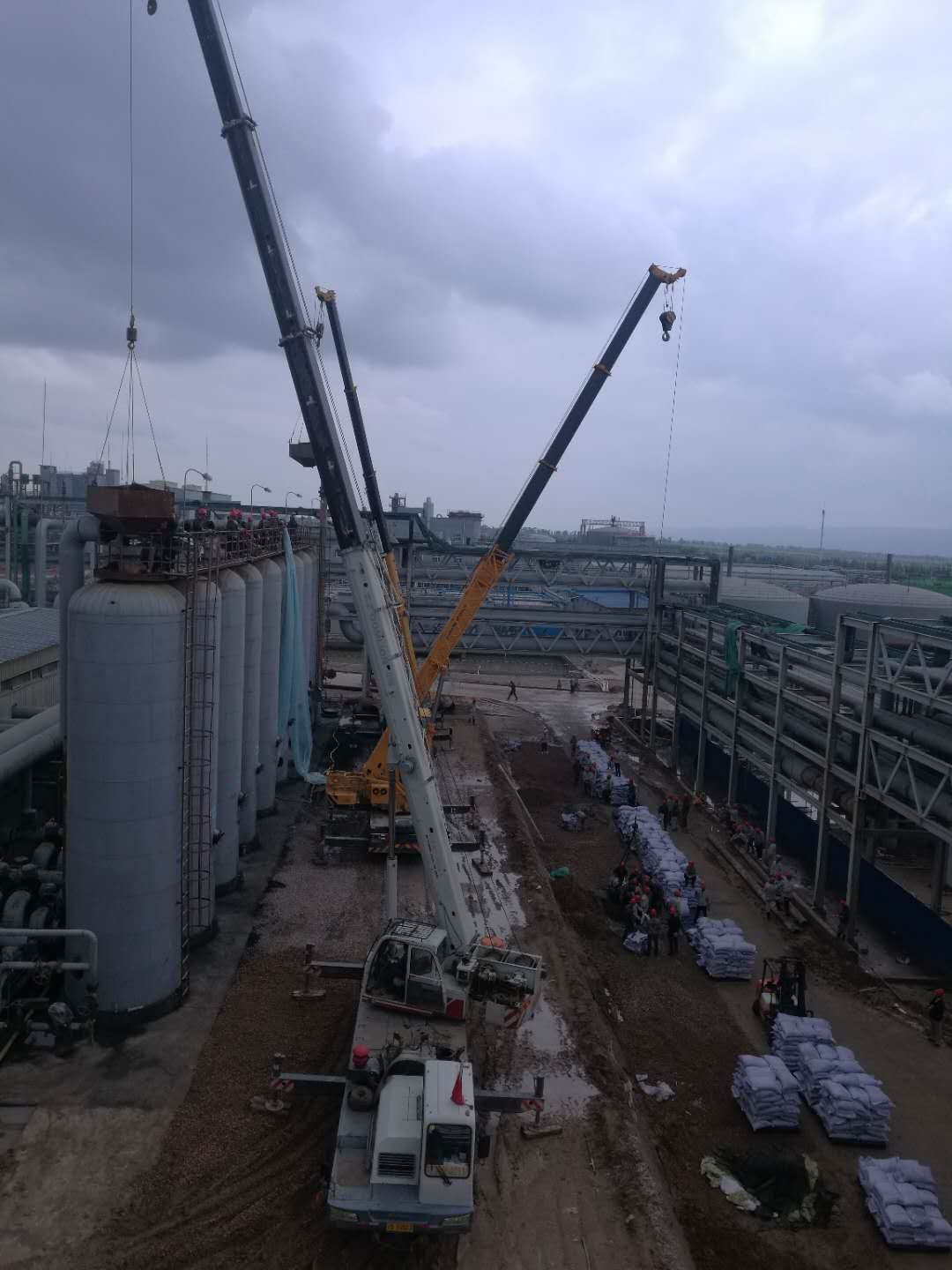 3臺(tái)吊車,8臺(tái)叉車,130余人,全力以赴,爭(zhēng)分奪秒