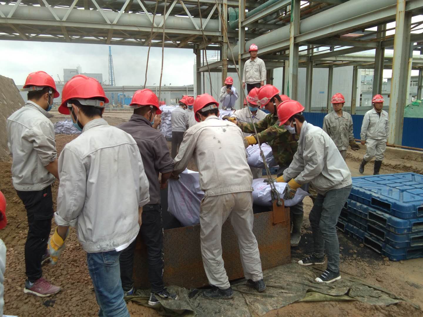 7月4日中午12時(shí),連續(xù)幾天的陰雨天終于暫停,盡管天公不作美,烏云密布,隨時(shí)會(huì)下雨,但對(duì)奮戰(zhàn)在廣拓化工一線的檢修者們來(lái)說(shuō),雨住了就是最好的消息。因?yàn)闆Q定化工系統(tǒng)能否按時(shí)開(kāi)車的關(guān)鍵項(xiàng)目,本次計(jì)劃?rùn)z修的重頭戲--乙炔干燥更換吸附劑工作終于能開(kāi)始了!摆s快安排吃飯,抽調(diào)一切力量,13時(shí)準(zhǔn)時(shí)到場(chǎng)協(xié)助檢修,我們要與天氣賽跑,趕在下雨前完成乙炔干燥吸附劑的填充工作!彪S著化工公司總經(jīng)理賈存富的一聲令下,各裝置、科室應(yīng)聲而動(dòng),積極組織人員參與到檢修工作中,一場(chǎng)與天氣賽跑的搶修大戲開(kāi)始了……