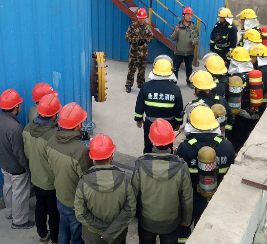 演練結(jié)束后由鹽業(yè)公司安全管理人員組織園區(qū)消防中隊(duì)與廣拓能源保衛(wèi)科警消班對(duì)鹽業(yè)公司油庫(kù)內(nèi)部布局、消防設(shè)施、設(shè)備及工藝管路、油庫(kù)儲(chǔ)量等進(jìn)行參觀、講解,同時(shí)與園區(qū)消防中隊(duì)人員就鹽業(yè)公司消防措施進(jìn)行交流。
