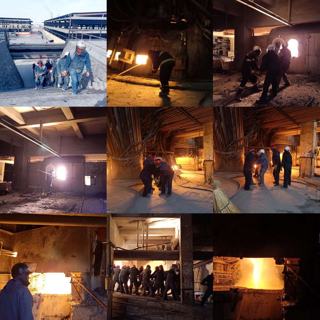對著熊熊爐火,冶煉工人知道,爐腔內(nèi)變化無盡的是冶煉工人期盼的碩果,每出一爐電石都像是打一場硬仗,現(xiàn)在的時節(jié)冶煉工人的衣服都是濕了又干,干了又濕。防燙服就成了冶煉工人的護身符,厚厚的穿在身上,當(dāng)脫下衣服的時候,發(fā)出一股餿餿的味道。每一次大修開爐都是一次新的挑戰(zhàn),堅守崗位,潛心觀察,呼喊奔忙,團結(jié)協(xié)作,沖鋒陷陣,奮戰(zhàn)前沿……。每天24小時火苗“呼呼呼……”地搖曳,煙霧混合著粉塵穿梭彌漫,熔硫滾滾,蒸汽翻卷,設(shè)備轟鳴,爐花飛舞。烈焰熠熠金光閃閃,熔流像一道道金色的瀑布,如一條條通紅透亮的巨龍,從爐腔內(nèi)豪放呼嘯著噴涌而出,順溜槽咆哮著渲泄而下。朵朵金燦燦的銅花在空中舞蹈,燁燁生輝迎胸撲面;冶煉工人的臉掛上金邊猶如一團團盛開的花,煜煜奪目流光溢彩。冶煉工的心情與急瀉的紅瀑布一起洶涌,熱血隨飛躍的熔龍一起翻騰,心花和歡呼的銅花一起飛舞,是呵,爐膛內(nèi)煉出了勞動者的贊歌,爐門外涌出了金色的碩果。