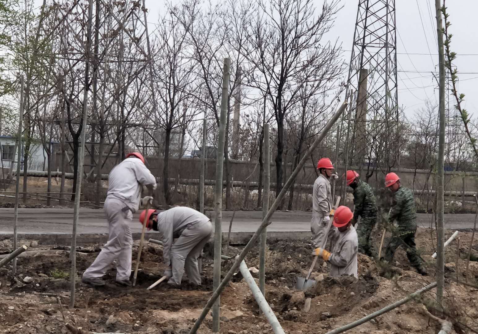 4月10日和11日,資源再生公司組織所有日勤人員栽種樹木。先后在東大路西側,4#電石爐西側,職工回民餐廳門口及成品裝置東邊等等地方栽種樹木上千棵。大家齊心協(xié)力,扶樹的、填土的,每個人都在努力的加快進度,頭上冒出了汗珠,渾身酸痛,可大家仍然堅持著,短短兩天時間就將所有計劃的樹木全部栽種完畢。