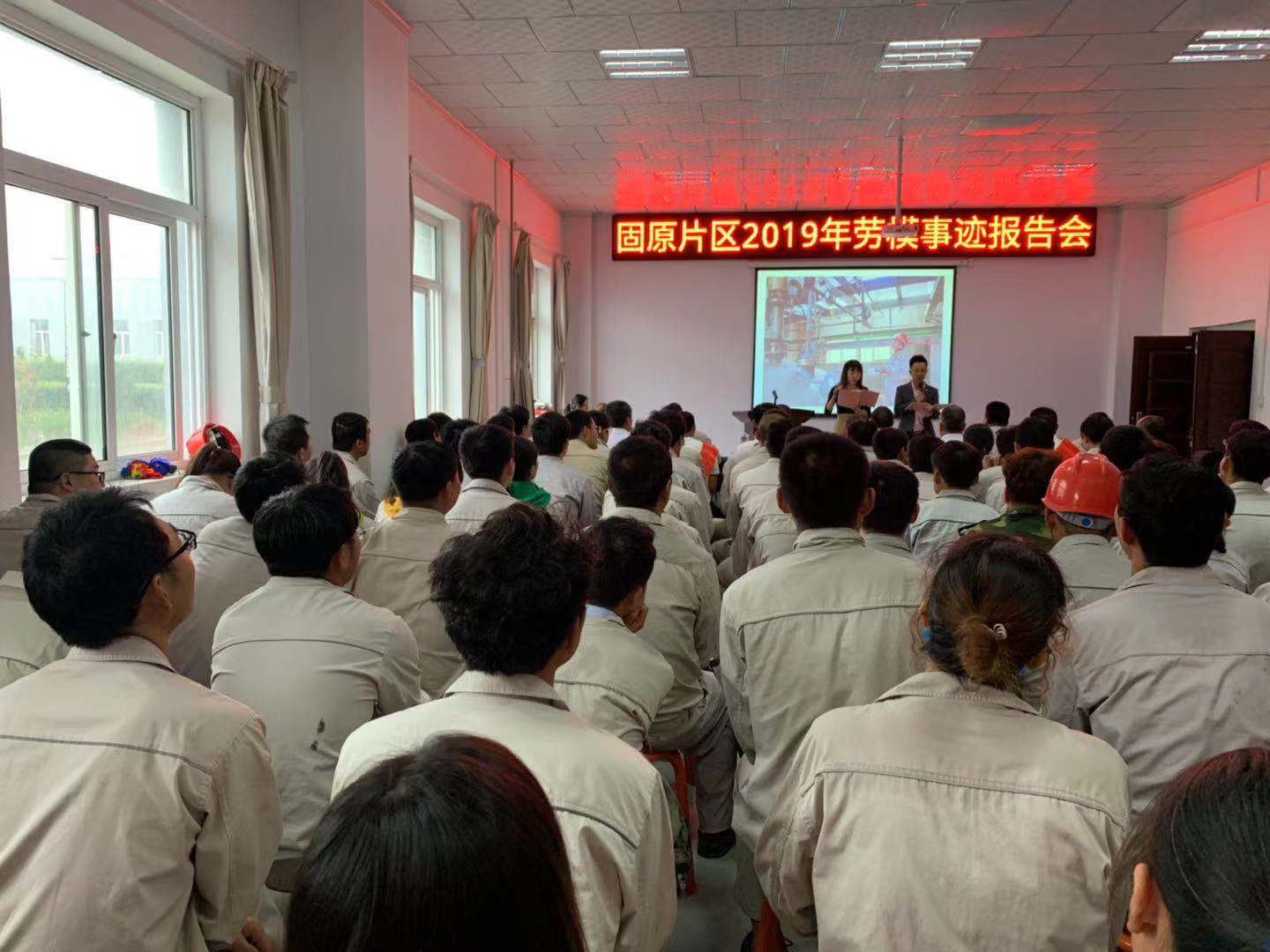 2019年9月5日,固原片區(qū)組織開展勞模事跡報告會,廣拓化工公司生產(chǎn)科科長鹿延軍同志、聚合裝置裝置長劉華同志作為勞模代表和優(yōu)秀共產(chǎn)黨員代表分別做了個人事跡報告。