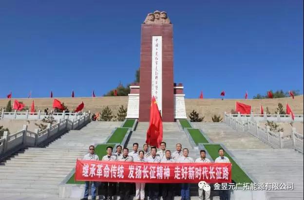 2019年10月17日,寧夏金昱元廣拓能源有限公司黨總支組織部分黨員代表,來(lái)到固原市西吉縣將臺(tái)堡紅軍長(zhǎng)征會(huì)師紀(jì)念園,開(kāi)展“繼承革命傳統(tǒng)、發(fā)揚(yáng)長(zhǎng)征精神、走好新時(shí)代長(zhǎng)征路”主題黨日活動(dòng),緬懷革命先烈、聆聽(tīng)長(zhǎng)征歷史,重溫習(xí)近平總書(shū)記偉大號(hào)召,接受精神洗禮,繼承革命傳統(tǒng),走好新時(shí)代長(zhǎng)征路。向紅軍長(zhǎng)征會(huì)師紀(jì)念碑敬獻(xiàn)花籃并鞠躬,重溫入黨誓詞,參觀了三軍會(huì)師紀(jì)念館,了解了紅軍長(zhǎng)征在寧夏的歷史始末,追憶紅軍長(zhǎng)征歲月,傳承光榮革命傳統(tǒng)。