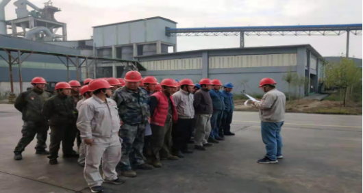 10月16日上午7時40分,成品裝置集結(jié)熟料煅燒工序、維修班人員針對回轉(zhuǎn)窯耐火磚挖補進行檢修前的動員大會。