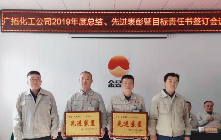 春節(jié)前期,廣拓能源化工公司組織召開2019年度工作總結(jié)、先進(jìn)表彰暨目標(biāo)責(zé)任書簽訂會(huì)議。本次會(huì)議由公司副總經(jīng)理盧志銀主持,化工公司總經(jīng)理、副總經(jīng)理、安全總監(jiān)、副總工程師出席,25名先進(jìn)集體、個(gè)人及70余名職工代表參加。
