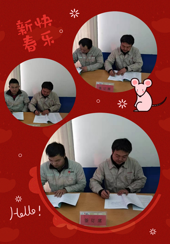 副總經(jīng)理梁軍與安環(huán)生產(chǎn)科、成品裝置和調(diào)度室負(fù)責(zé)人簽訂2020年生產(chǎn)經(jīng)營管理目標(biāo)責(zé)任書