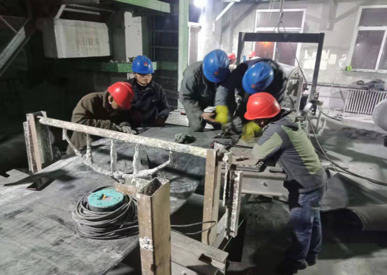 因?yàn)榭紤]到生產(chǎn)的緊急性,不能等,必須馬上維修。那天夜里,由于當(dāng)班人員人手不夠,為了縮短搶修時(shí)間,維修工人剛得知消息后從睡夢中爬起來趕到了搶修現(xiàn)場同當(dāng)班人員一同組織搶修,他們似乎也忘卻了周圍肆虐的寒風(fēng),也許在這一刻不是他們不冷而是他們深知自己的職責(zé)。