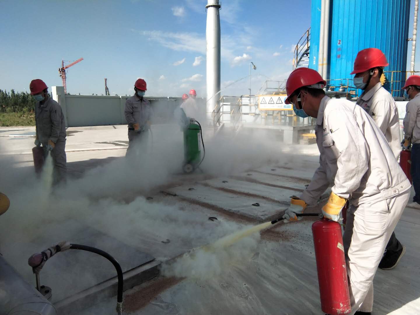 為提高公司事故防范和應急保障能力,及時有效地處理火災事故,避免或降低可能發(fā)生的事故對公司造成經(jīng)濟損失和不良影響,根據(jù)公司“安全生產(chǎn)月”活動安排,6月23下午16時50分,興昊永勝鹽業(yè)公司緊緊圍繞“消除事故隱患,筑牢安全防線”的活動主題,組織開展了一次燃油庫區(qū)回油管路漏油導流溝著火事故應急演練。本次事故演練由副經(jīng)理張建東主持,各科室、裝置50余人參加,同時還邀請了片區(qū)主管領導和專業(yè)工程師參加活動。