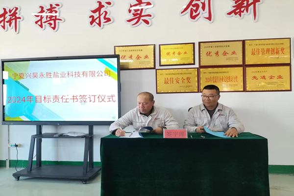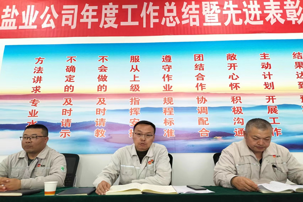 2024年1月8日下午,鹽業(yè)公司組織召開了2023年度總結(jié)表彰暨2024年目標(biāo)責(zé)任書簽訂大會(huì)。會(huì)議由總經(jīng)理尚繼榮同志主持,副經(jīng)理、科室長(zhǎng)、裝置長(zhǎng)、受獎(jiǎng)人員及員工代表參加。