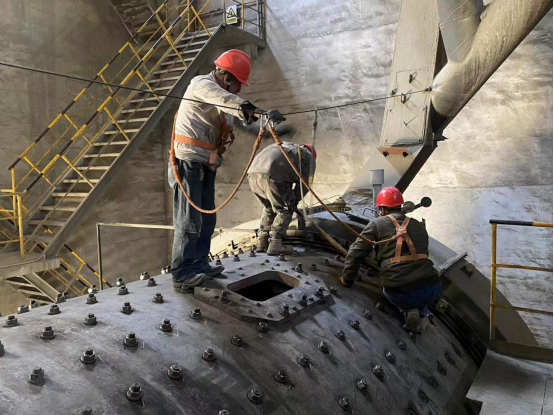 在定人定量清理3406提升機結皮和撿鋼球時,大家更以團結協(xié)作,互相加油鼓勁為基礎,F(xiàn)場有的拿著風鎬打結皮,有的你來我往撿著鋼球,忙的不亦樂乎。所有動作在重復中愈加熟練,即使操作繁重、天氣嚴寒,但作業(yè)人員的臉頰滿是勞作后的熱情和汗水。大家加班加點,努力在年前完成檢修任務,為年后保證設備的正常運行及其他檢修工作騰出更多時間。