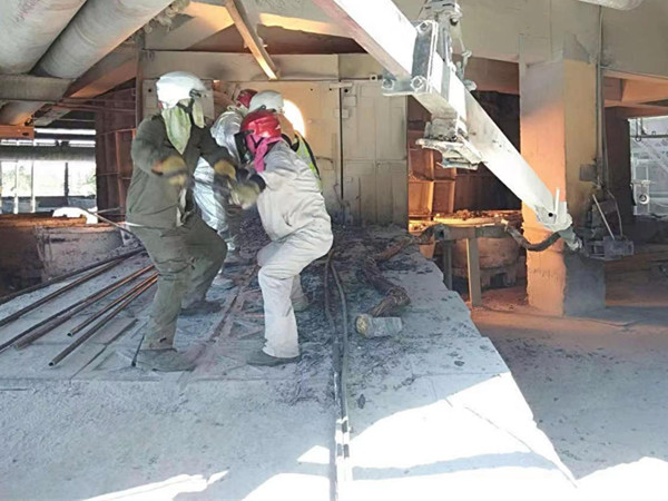 無(wú)論是嚴(yán)冬還是酷暑,走進(jìn)資源再生電石出爐現(xiàn)場(chǎng),就能看見(jiàn)這么一群“全副武裝”的職工,身著隔熱服,頭裹防高溫面罩,手戴著“手燜子”,腳著厚勞保;他們同心協(xié)力,干勁十足得揮舞著手中的鋼釬,鋼釬在爐眼里來(lái)回穿梭,將近2000攝氏度高溫的電石緩緩流入電石鍋,這一群人就是電石生產(chǎn)中最可親可愛(ài)的“出爐工”。