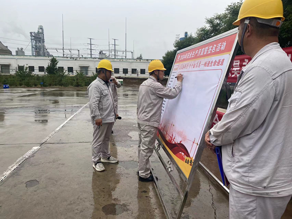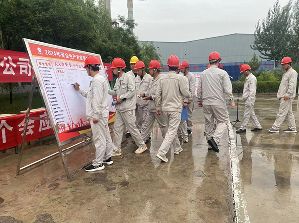 2024年5月29日上午,興昊永勝鹽業(yè)公司組織開展了“安全生產(chǎn)月”啟動儀式。啟動儀式上,各裝置長和勞務(wù)外包負(fù)責(zé)人分別作了表態(tài)發(fā)言,主管副經(jīng)理帶領(lǐng)大家做了安全宣誓,總經(jīng)理尚繼榮同志帶領(lǐng)每一位員工鄭重的在安全承諾簽字版上寫下了自己姓名。各裝置長和勞務(wù)外包負(fù)責(zé)人承諾:“他們會帶領(lǐng)部門員工,牢固樹立安全紅線意識,認(rèn)真履職崗位職責(zé),嚴(yán)格遵守公司規(guī)章制度,深入排查治理各類安全隱患,杜絕違章和安全生產(chǎn)事故發(fā)生”。