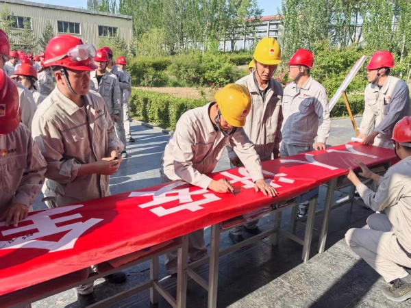 2025年5月28日上午,炔烴節(jié)能公司組織開展了“安全生產(chǎn)月”活動啟動儀式。啟動儀式上,首先由各裝置長、勞務(wù)外包單位負責人依次做表態(tài)發(fā)言;其次,安全總監(jiān)帶領(lǐng)所有人員進行“安全生產(chǎn)月”宣誓;總經(jīng)理尚繼榮同志進行啟動儀式發(fā)言,對公司安全生產(chǎn)月活動做出安排部署;最后,由總經(jīng)理帶領(lǐng)每一位員工在安全承諾板上依次進行簽名,并由安全科組織發(fā)放安全生產(chǎn)宣傳材料。公司所有員工及勞務(wù)外包單位人員承諾:“忠誠企業(yè),恪盡職守,堅守紅線,珍愛生命,創(chuàng)建“平安企業(yè)”!并且堅決做到:牢記安全第一,遵守規(guī)章制度,履行安全職責,不違章,不冒險,不留隱患,不出事故。他們將以實行行動,爭做安全合格員工,確保生產(chǎn)安全,讓企業(yè)放心,讓家人安心。”