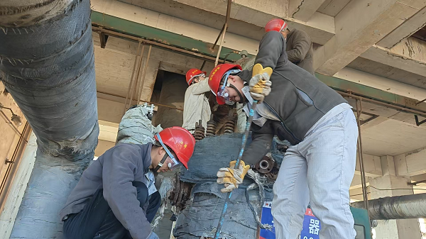 本次檢修任務繁重,但檢修人員卻干勁十足。他們有的拆卸螺栓,有的進行吊裝,有的開展焊接……他們配合默契,動作精準,工作井然有序。他們以勇于擔當?shù)呢熑胃泻蜁r不我待的使命感攻克難關(guān),用實際行動勾勒出了一幅幅彰顯勞動之美的畫卷。