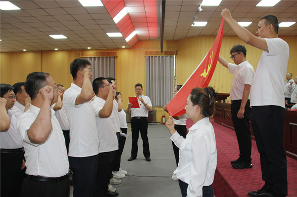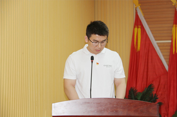 新黨員代表李愛軍作表態(tài)發(fā)言。他號召廣大黨員不忘初心,勇挑重?fù)?dān)、銳意進(jìn)取,時(shí)刻為企業(yè)發(fā)展和國家建設(shè)貢獻(xiàn)智慧與力量。