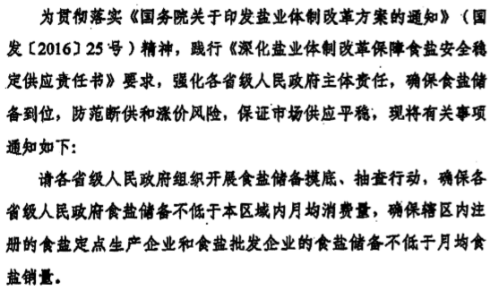 國(guó)務(wù)院《鹽業(yè)體制改革方案》規(guī)定: