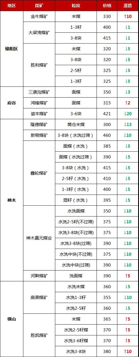 上周末至今,榆林地區(qū)煤價(jià)整體平穩(wěn),個(gè)別煤礦小幅調(diào)整煤價(jià)5-10元/噸。據(jù)榆林煤炭交易中心了解,近期下游需求依舊疲軟,汽運(yùn)方面整體拉煤車(chē)輛較少,多數(shù)煤礦以銷定產(chǎn),挺價(jià)意愿強(qiáng)烈,個(gè)別煤礦庫(kù)存較多,小幅下調(diào)煤價(jià),加速處理庫(kù)存。