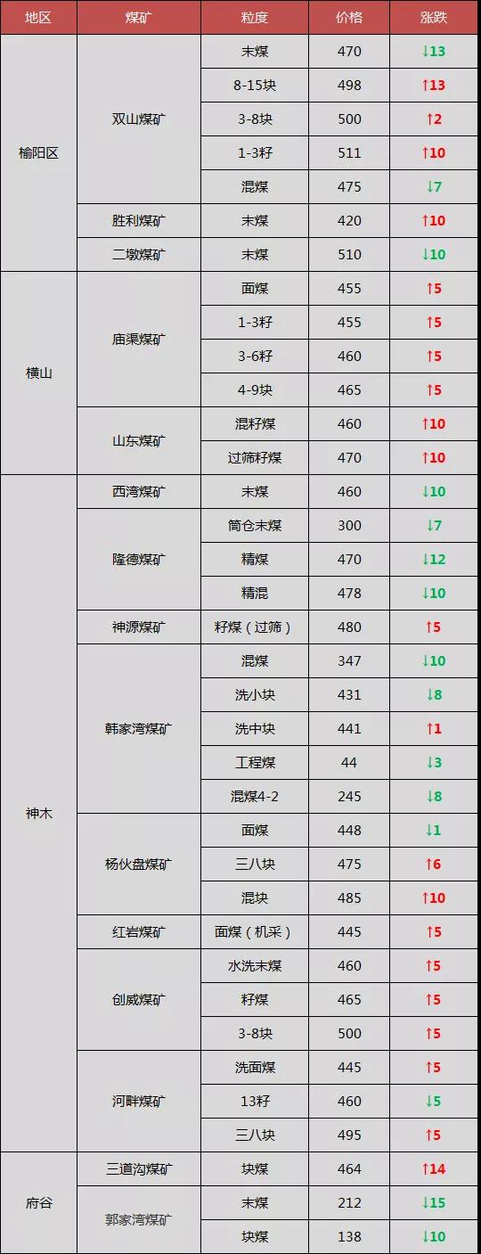 最新調(diào)價(jià)煤礦: