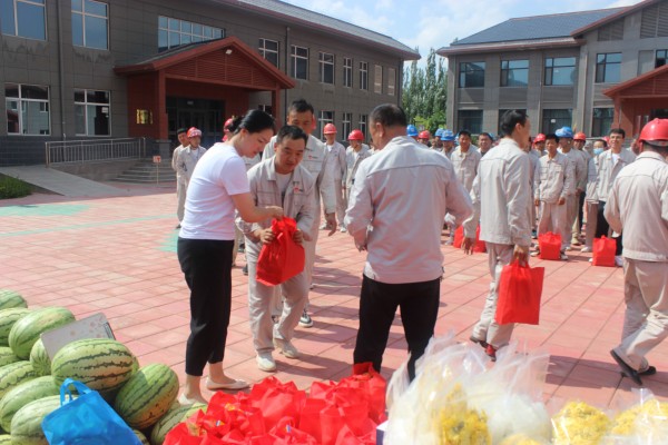 青銅峽市總工會(huì)和固原經(jīng)濟(jì)開(kāi)發(fā)區(qū)總工會(huì)為集團(tuán)公司送來(lái)西瓜、礦泉水、金絲菊、冰糖等防暑物品,表達(dá)對(duì)企業(yè)一線員工關(guān)心和厚愛(ài)。