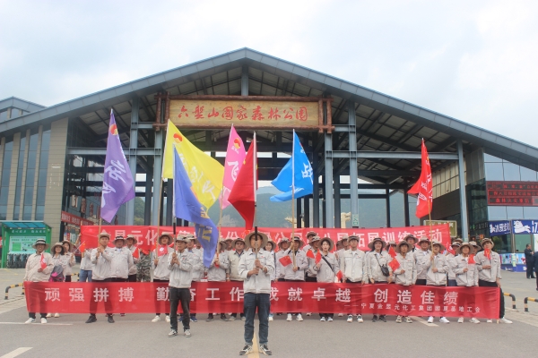 早晨8:30,參加拓展訓(xùn)練人員從公司東門口集合出發(fā),乘坐旅游巴士一路歡歌,共赴六盤山森林公園,沐浴綠野清風(fēng),與六盤山水來一場久違的約會。