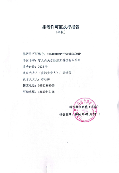 寧夏興昊永勝鹽業(yè)科技有限公司2023年度排污許可執(zhí)行報(bào)告
