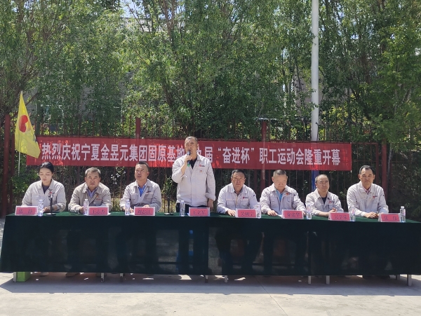 固原基地黨委書記、總經(jīng)理王立軍宣布:寧夏金昱元化工集團股份有限公司固原基地第九屆“奮進杯”職工運動會開幕!