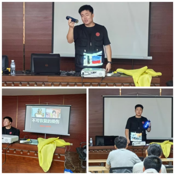 培訓(xùn)中,胡博老師向員工們介紹了火災(zāi)類(lèi)型:包括固體火災(zāi)、液體火災(zāi)、氣體火災(zāi)、電器火災(zāi)、金屬火災(zāi)、烹飪火災(zāi)等六種火災(zāi),并指出火災(zāi)發(fā)生后應(yīng)采取的正確滅火方法。同時(shí)介紹了不同消防工具,尤其對(duì)微粒子滅火器、水基滅火器、消防應(yīng)急手電、滅火毯等用途及使用方法進(jìn)行詳細(xì)講解,使大家對(duì)滅火工具及滅火方法有了深層次的了解。
