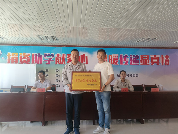 最后,彭堡鎮(zhèn)楊忠堡村黨支部書記童正武為寧夏金昱元化工集團(tuán)股份有限公司頒授了“捐資助學(xué) 愛心企業(yè)”榮譽(yù)牌。