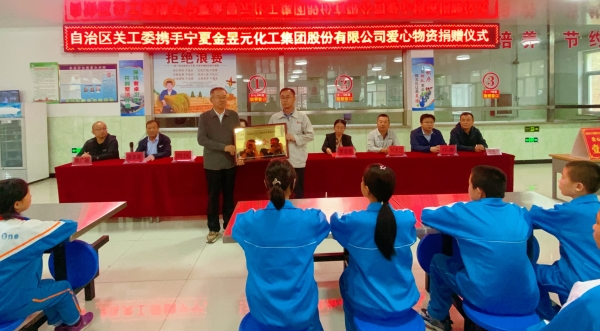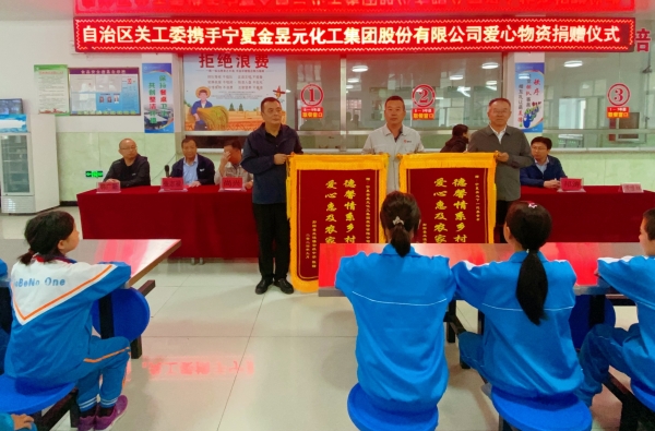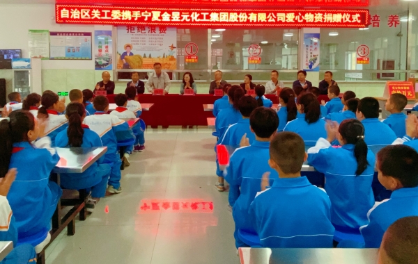 寧夏金昱元化工集團(tuán)股份有限公司向彭陽(yáng)縣王洼鎮(zhèn)中學(xué)捐助10萬(wàn)元,用于購(gòu)置辦公設(shè)施、體育器材、生活用品等。